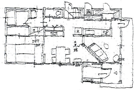 当初は内部に広くタタキスペースを設けて、だるまストーブを設置し、居間を吹き抜けにするプランニングをしましたが、暖房費を考慮した現実的なプランとなりました。 全部で10プランまでご提出しておりますが、ここでは途中の5プランまでご紹介します。